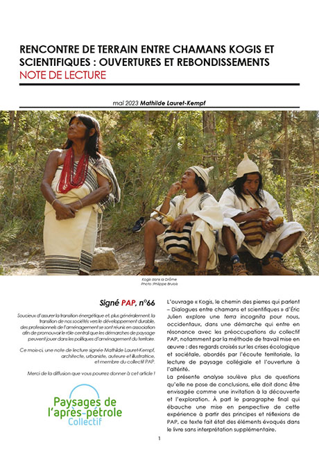 - écriture d’un article "Rencontre de terrain entre chamans kogis et scientifiques : ouvertures et rebondissements", à partir du livre "Kogis, le chemin des pierres qui parlent - Dialogues entre chamans et scientifiques" d’Éric Julien, Actes Sud, 2022, www.actes-sud.fr/catalogue/nature-et-environnement/kogis-le-chemin-des-pierres-qui-parlent,
