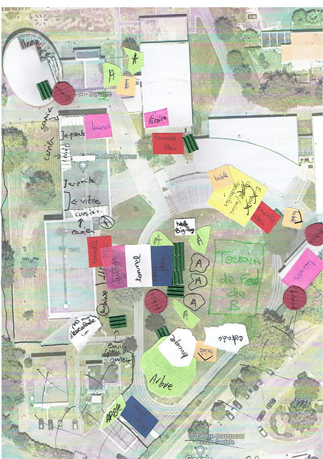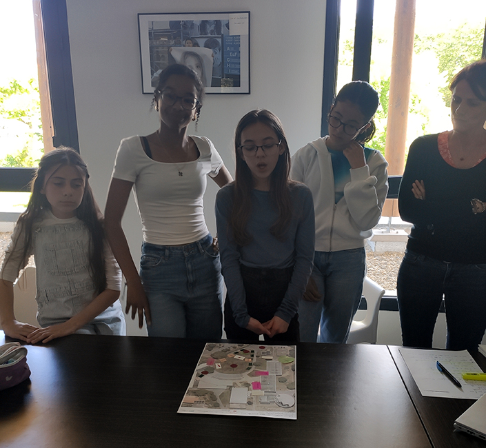Notre mission a consisté à accompagner méthodologiquement l’équipe de direction et le CVC (Conseil de la vie collégienne) pour mettre en œuvre une concertation auprès des élèves du collège, afin de définir un projet qui rééquilibre la mixité dans la cour d’école et réponde également plus globalement aux aspirations des élèves pour des usages plus harmonieux des espaces communs.