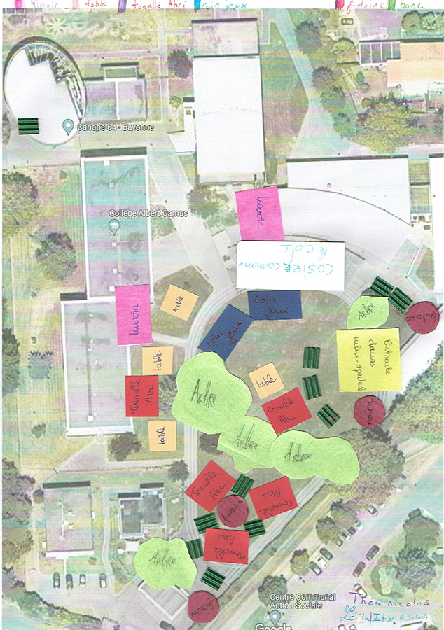- Élaboration collective d'un plan d’amélioration des espaces communs au sein du collège, faisant appel à l’imaginaire et à la créativité des élèves.
