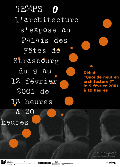 - exposition de huit travaux de diplôme au Palais des Fêtes de Strasbourg (document à télécharger (3647 Ko)) accompagnée d’une soirée-débat ouverte au public intitulée « Quoi de neuf en architecture ? »,